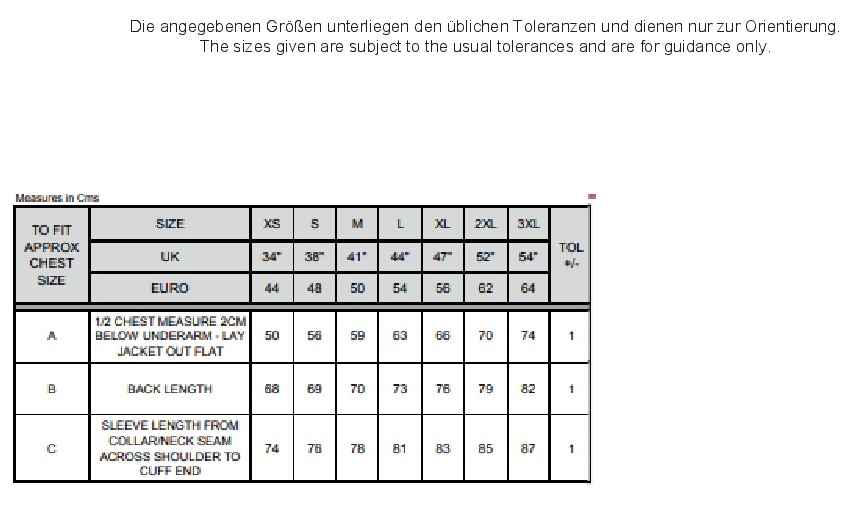 Größen: XS, S, M, L, XL, XXL, 3XL (Farbe schwarz + Navy)