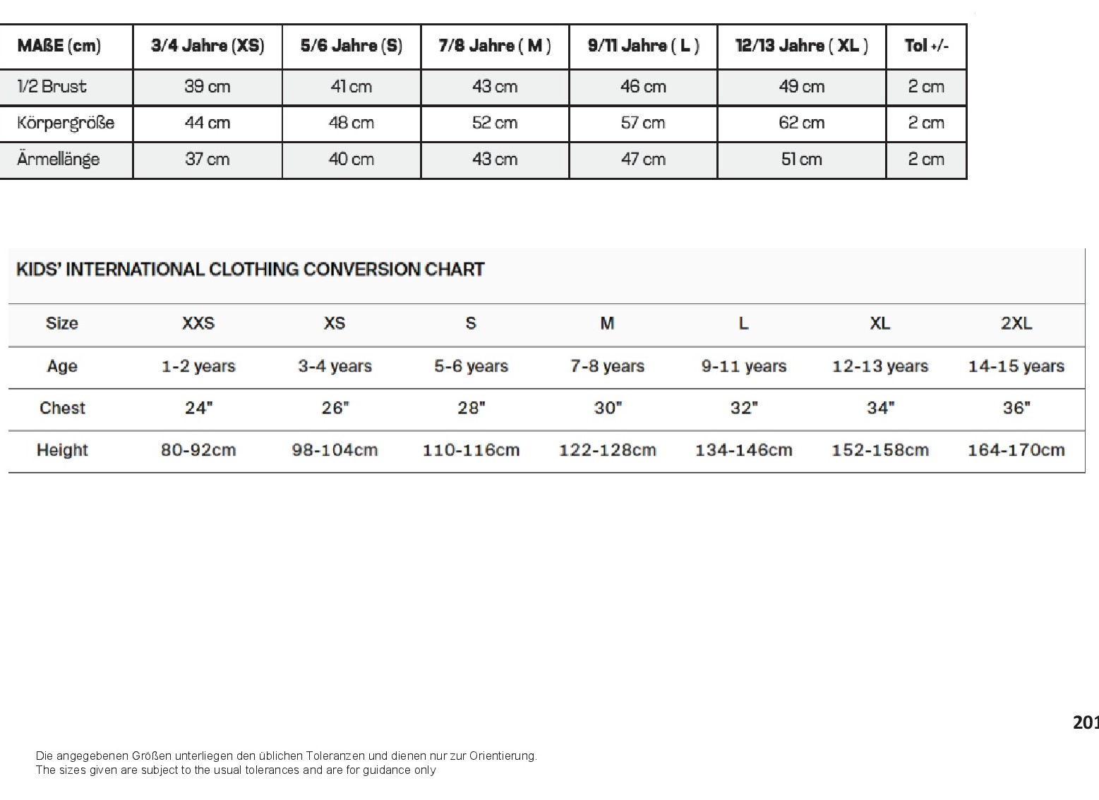 Größen: 3/4 (XS), 5/6 (S), 7/8 (M), 9/11 (L), 12/13 (XL) Jahre
