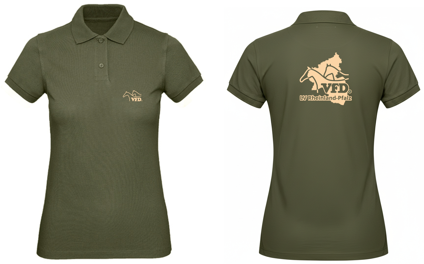 Edles Polo Hemd aus 100% Bio-Baumwolle bedruckt mit dem Logo des VFD e.V. auf der Brust und vom Landesverband Rheinland-Pfalz auf dem Rücken.